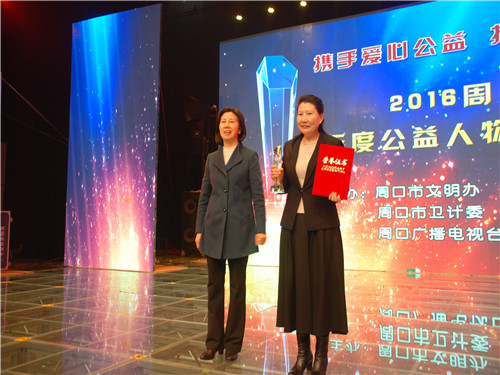2月9日上午,由周口市文明辦、市紅十字會、市衛(wèi)計委、周口廣播電視臺共同舉辦的2016年度公益人物頒獎儀式舉行。我院理事長李海燕當選為周口市愛心公益大使,我院獲我院獲2016年度愛心聯(lián)盟成員單位。