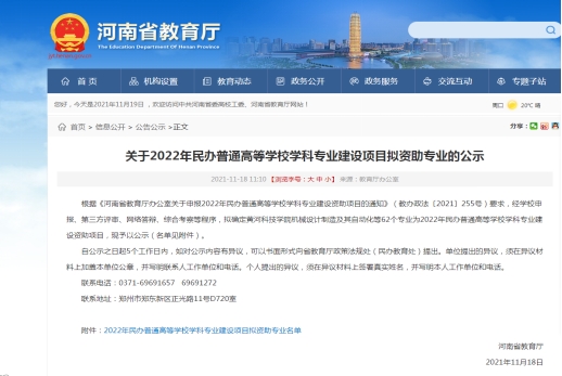 2021年11月18日,河南省教育廳官網(wǎng)(jyt.henan.gov.cn)公示,9001cc金沙現(xiàn)代物流管理專業(yè)和大數(shù)據(jù)與財務(wù)管理專業(yè)同黃河科技學(xué)院、鄭州升達經(jīng)貿(mào)管理學(xué)院和鄭州商學(xué)院等21個學(xué)校62個專業(yè)擬確定為2022年民辦普通高等學(xué)校學(xué)科專業(yè)建設(shè)資助項目。