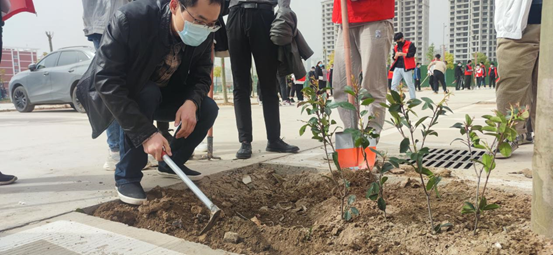 學(xué)院領(lǐng)導(dǎo)對本次活動極為重視。在學(xué)院黨總支書記王力偉、團(tuán)總支書記張靖文的帶領(lǐng)下,參與活動的同學(xué)們積極熱情的投入了活動中。師生一起動手,如火如荼地進(jìn)行植樹活動。他們親手小心翼翼地剝?nèi)涿绲谋Wo(hù)膜,在領(lǐng)導(dǎo)們的指導(dǎo)下,深挖坑,多培土,用手中的鋤頭和鏟子挖下一個個深坑,一起種上一棵棵希望之樹,并認(rèn)真澆灌上一桶桶春天的甘泉。不一會兒的功夫,空地上就栽滿了樹苗。大家你看看我,我望望你,都露出了喜悅的笑容。雖然累了,衣服臟了,但師生們都毫不在意,仍繼續(xù)埋頭苦干。當(dāng)植樹活動結(jié)束后,師生們意猶未盡,還希望能多為校園、為社會種一棵樹,留一片藍(lán)天。他們紛紛感嘆道:多年后的河南科技職業(yè)大學(xué),該是如何一番繁花似錦啊。今日的播種,意義非凡,利己利校利國!