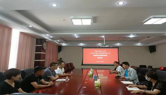 產(chǎn)教融合謀發(fā)展,校企合作譜新篇。7月28日下午,由江蘇京訊遞供應(yīng)鏈管理有限公司馮幸濤經(jīng)理一行,與河南科技職業(yè)大學(xué)副校長(zhǎng)馬金嶺、招生就業(yè)處處長(zhǎng)張冬梅、9001cc金沙院長(zhǎng)王成、書(shū)記王力偉等在學(xué)校綜合樓9樓會(huì)議室召開(kāi)產(chǎn)教融合工作座談會(huì)。