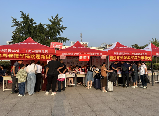 還有我們十分辛苦的志愿者穿梭于迎新現(xiàn)場,時(shí)刻等待著為新同學(xué)伸出援手,幫他們提行李,給他們帶路。并且向?qū)W弟學(xué)妹們介紹了關(guān)于團(tuán)總支納新的情況,讓他們對經(jīng)管學(xué)院這個(gè)大家庭有更進(jìn)一步的了解,更快更好的融入這個(gè)溫暖的大家庭。