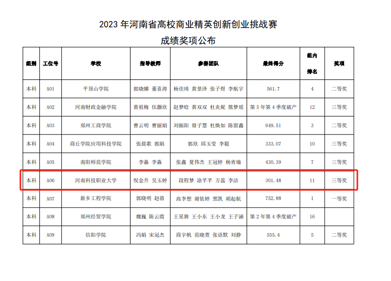 9001cc金沙在2023年河南省高等教育學(xué)會主辦的河南省高校商業(yè)精英創(chuàng)新創(chuàng)業(yè)挑戰(zhàn)賽中取得的優(yōu)異成績。此次競賽我院共榮獲省級一等獎2項,二等獎1項和三等獎3項,展現(xiàn)出我院在商業(yè)創(chuàng)新領(lǐng)域的卓越實力。