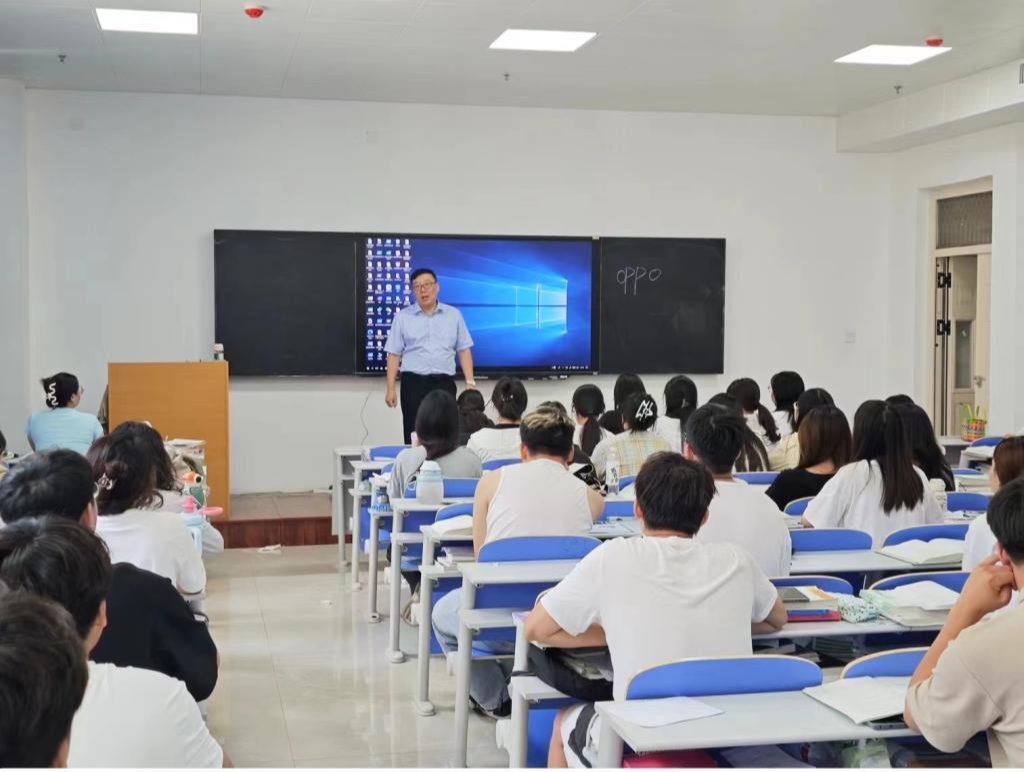 2024年6月18日,河南科技職業(yè)大學(xué)副校長(zhǎng)師鵬蒞臨我院,為我院師生開展思想政治教育授課。師校長(zhǎng)首先指出2024年是中華人民共和國(guó)成立75周年,是實(shí)現(xiàn)“十四五”規(guī)劃目標(biāo)任務(wù)的關(guān)鍵一年,也是學(xué)校迎接本科評(píng)估承上啟下的關(guān)鍵之年,學(xué)校將始終堅(jiān)持以習(xí)近平新時(shí)代中國(guó)特色社會(huì)主義思想為指導(dǎo),深入學(xué)習(xí)貫徹習(xí)近平文化思想,深刻領(lǐng)悟“兩個(gè)確立”的決定性意義,增強(qiáng)“四個(gè)意識(shí)”,堅(jiān)定“四個(gè)自信”,做到“兩個(gè)維護(hù)”。