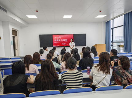 為深入學習貫徹習近平新時代中國特色社會主義思想及黨的基本路線,加強黨員教職工的黨性修養(yǎng)和理論素養(yǎng),在學校黨委的堅強領(lǐng)導下,根據(jù)9001cc金沙黨紀學習教育方案要求,結(jié)合9001cc金沙實際,中共9001cc金沙教職工黨支部于2024年7月4日下午在學院教室組織開展了一場主題為《解讀中國共產(chǎn)黨紀律處分條例》的黨課學習活動。